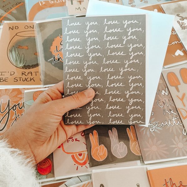 Flo & Syd cards are printed here in Bend on recycled linen paper. All of the love and good vibes in the world are put into each and every piece. I made these cards for you to form a moment of connection with whomever you intend, so please keep the sunshiny energy flowing.