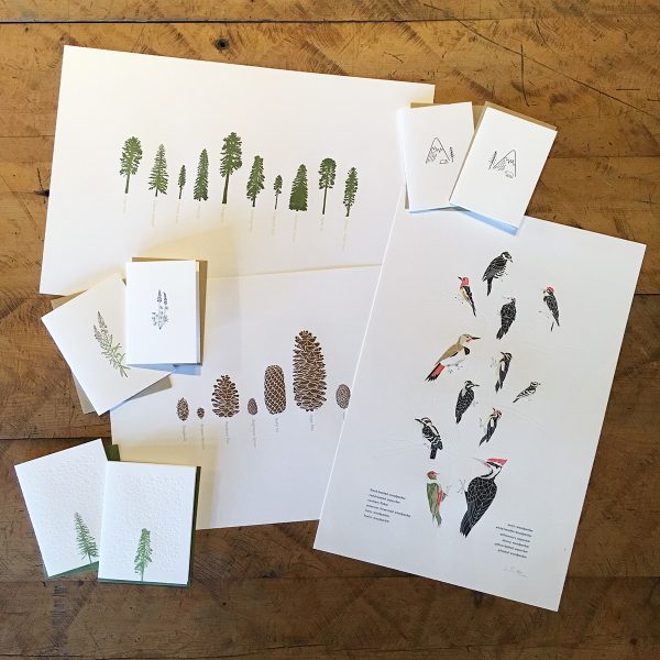 Green Bird Press is a small letterpress printing and book binding operation with a modern, minimal, often geeky approach to design based in Bend, Oregon. We make hand pressed prints and cards on an antique printing press, leather bound journals stitched by hand, and most recently have been loving stickers and pins! You can find us online or stop by our studio at The Workhouse – an awesome space with both artist studios and a retail shop.