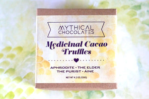 Specializing in dark chocolate infused with superfoods, Mythical Chocolate grows from the ancient seeds of appetite and vigor that sprout the desire for delectability and health to merge in symbiotic play and immerse you in the unified experience of pleasure~nourishment. Born in the realm of play, celebration, and ceremony, the recipes manifest themselves out of integrity with quality ingredients and loyalty to well-being.
